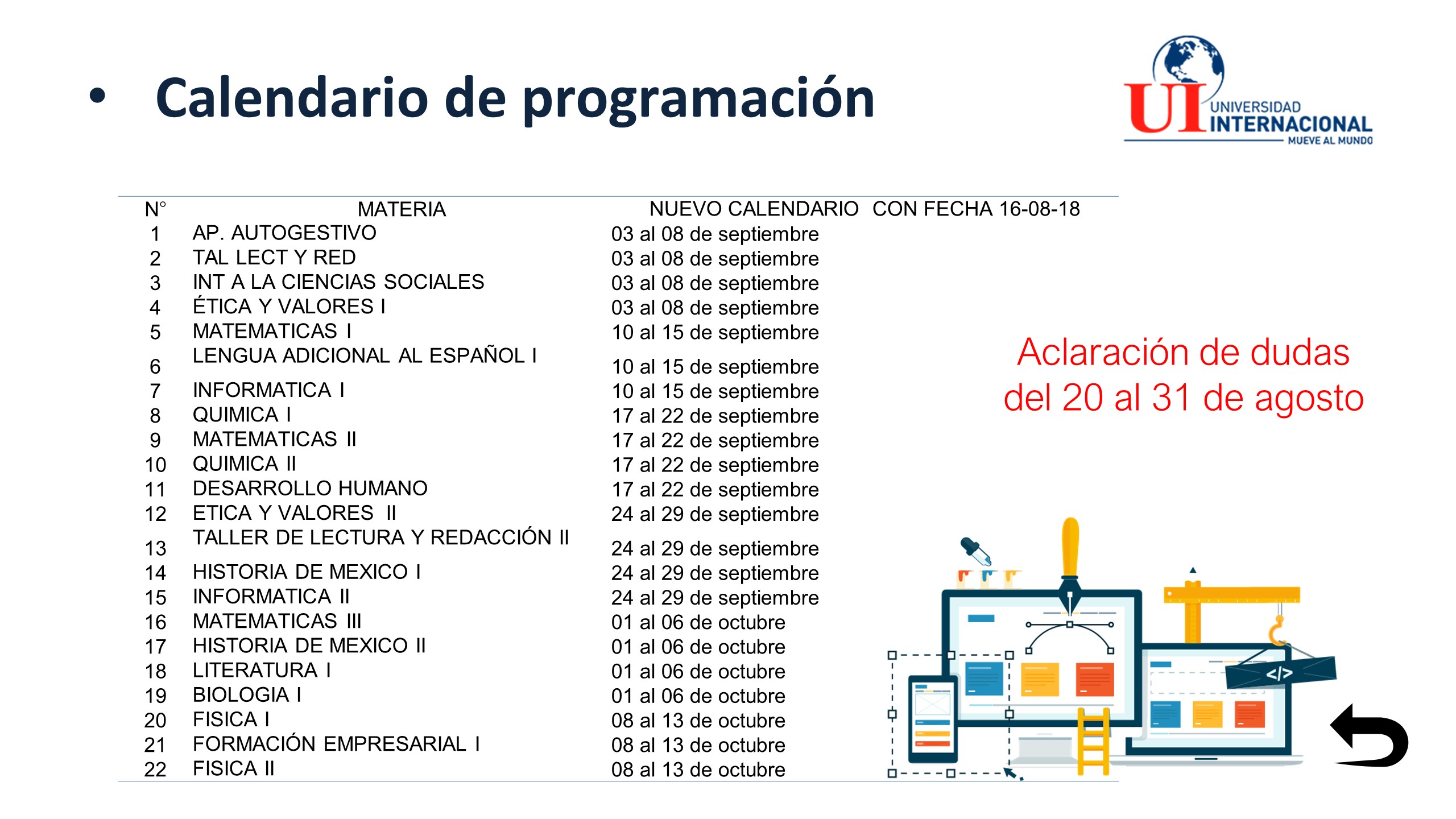 d) Los alumnos con rezago atenderán a los procesos establecidos para recursamiento mismos que se las ha dado a conocer en su grupo y turno de estudio.